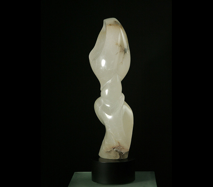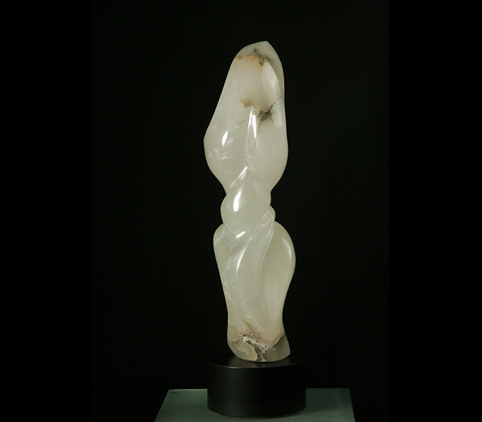 Materials: white translucent alabaster stone mounted on a micarta swivel base