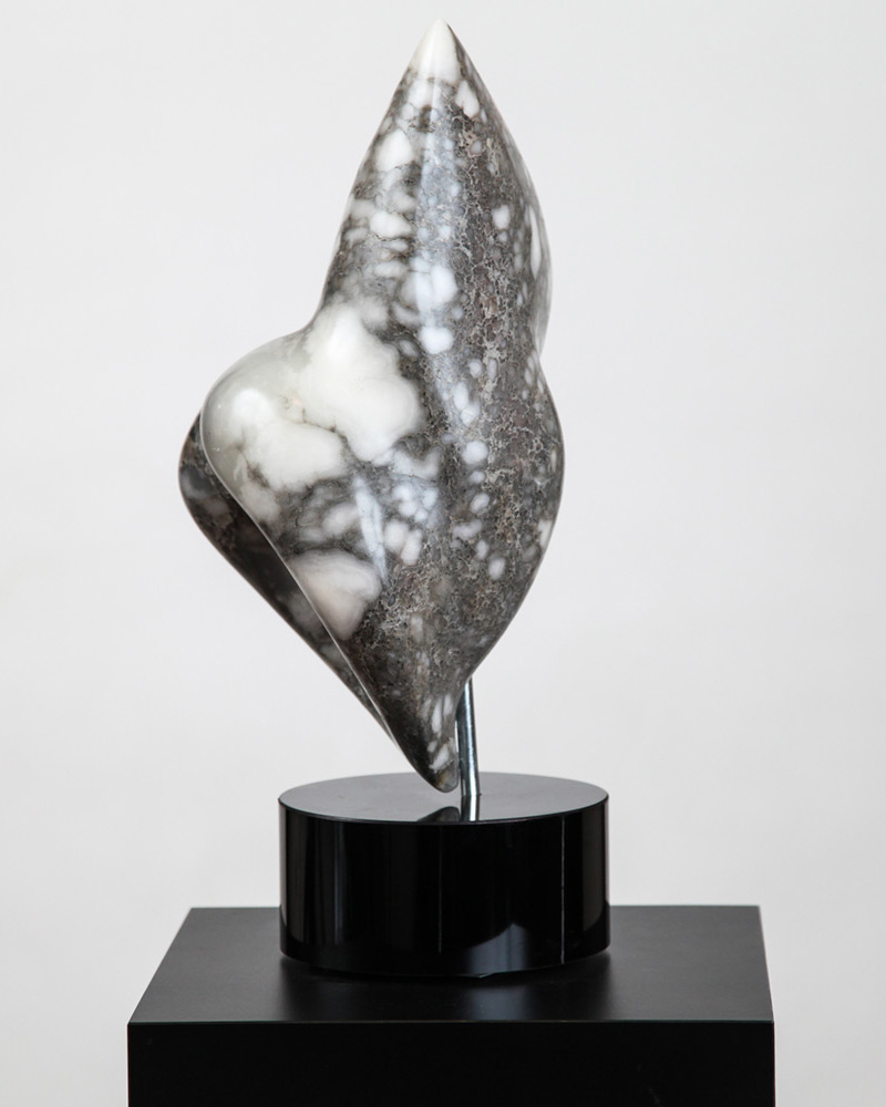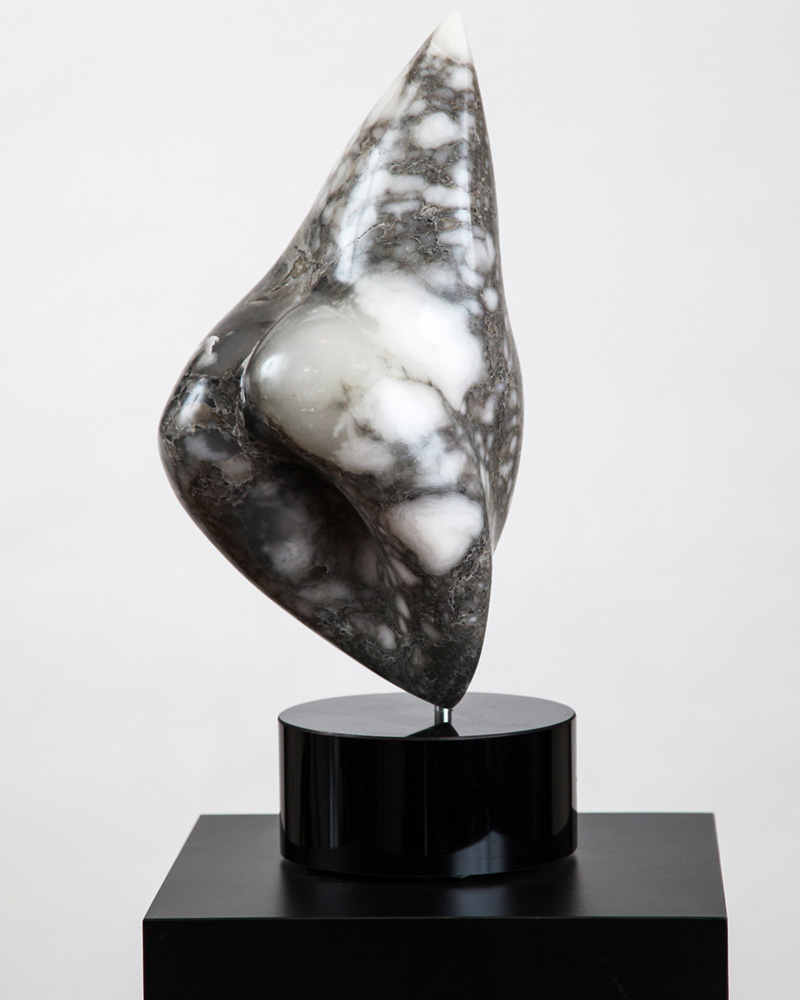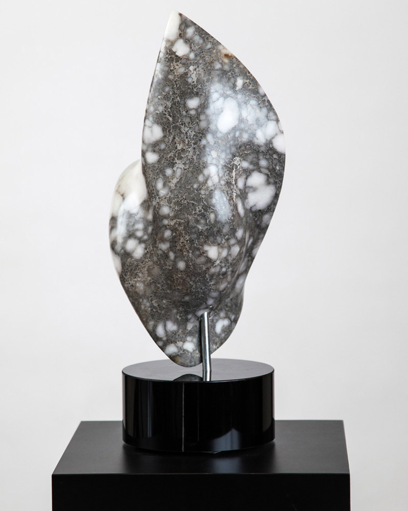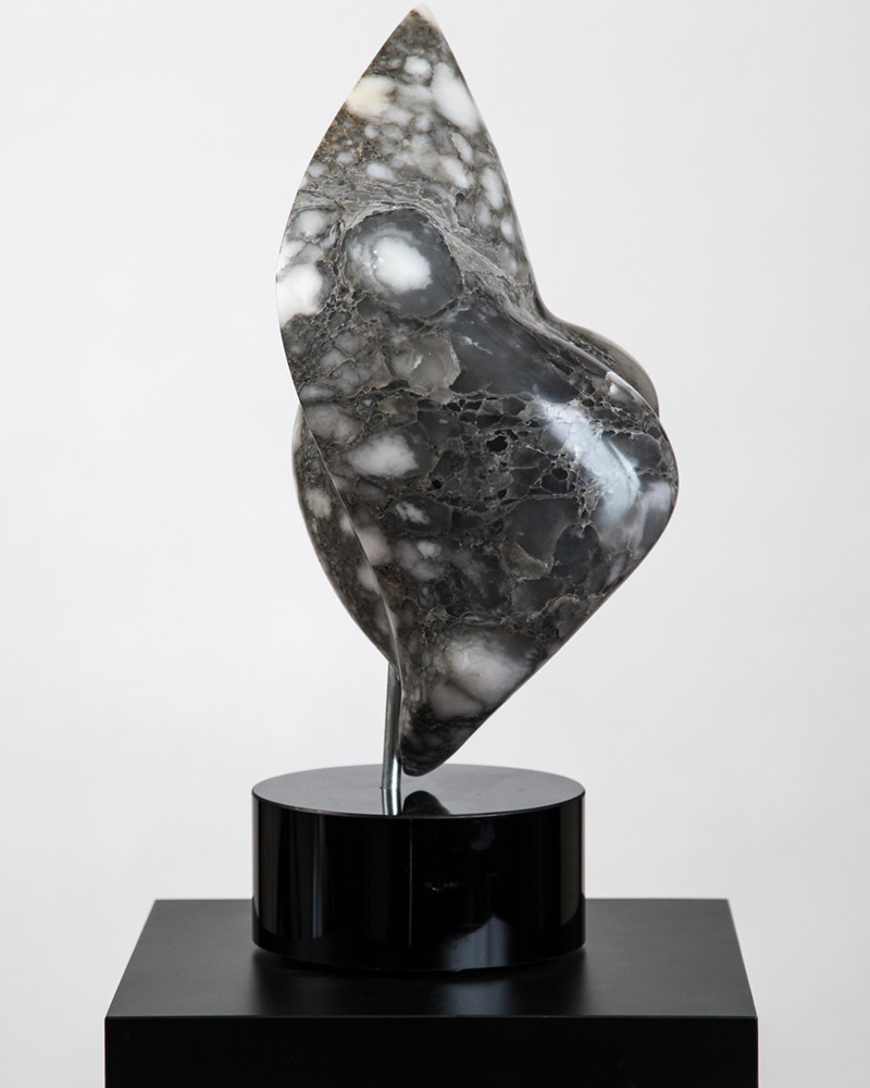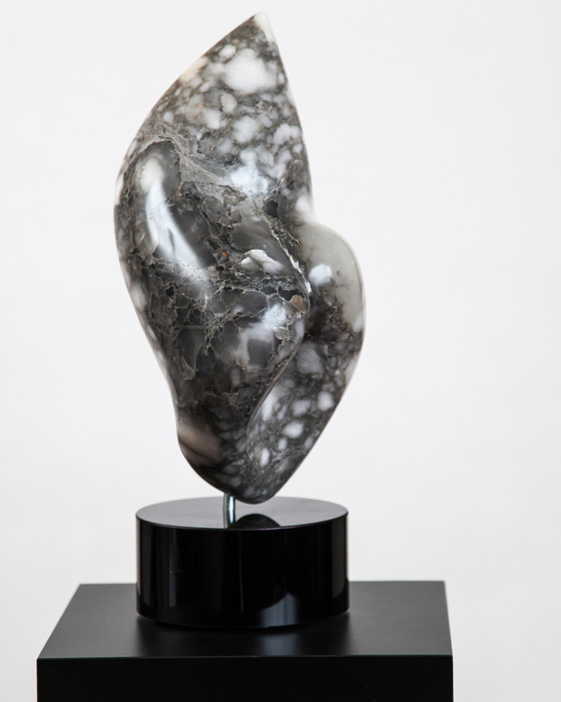 Materials: charcoal-grey Italian scaglione translucent alabaster stone